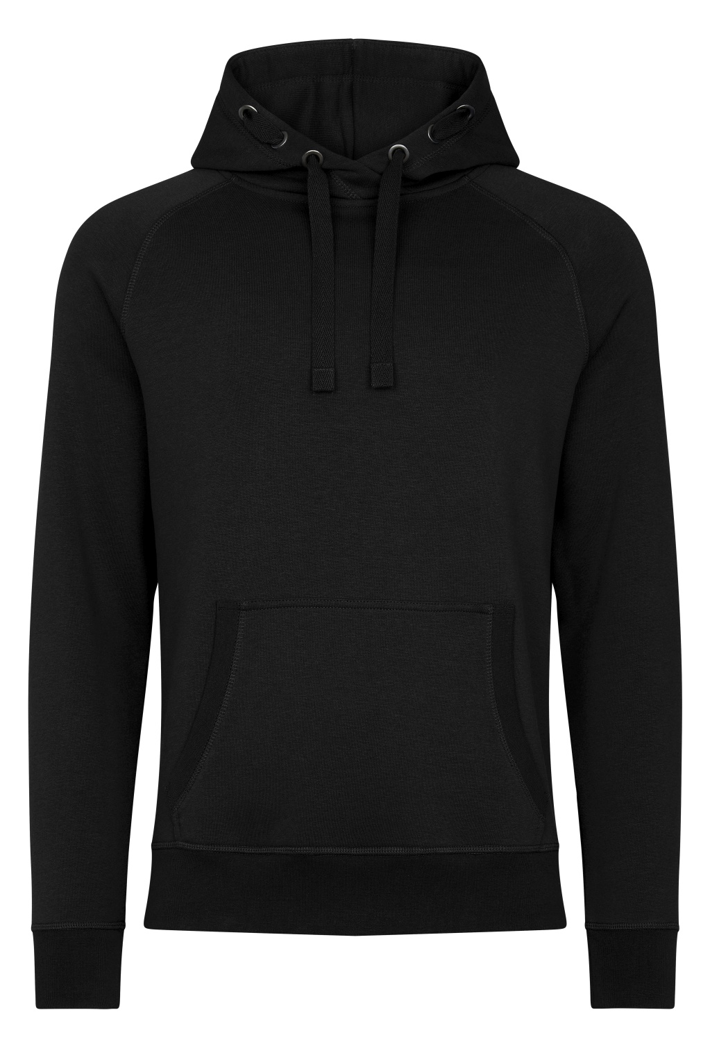 70% hochwertiger, gekämmter, ringgesponnener Baumwolle und 30% recyceltem Polyester hergestellt. Der Hoodie besitzt einen sportlichen Schnitt mit deutlich erhöhtem Tragekomfort. Saum, Taschenabschluss und Ärmelbund sind aus hochwertigem 1×1-Rippstrick. Der Kapuzenzug, mit breiten Ton-in-Ton Kordeln und je drei Metallösen im Antik-Look, ist elegant gelöst.